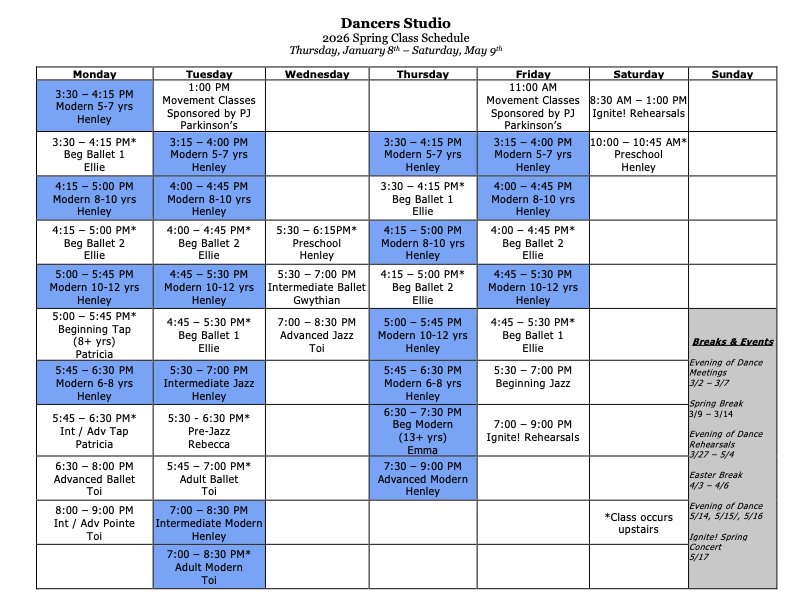 Categories: All Adult Ballet Creative Movement Dance Jazz Modern Subscription Tap Unlimited / Apprentice Modern Dance Classes (Spring) [Monthly] Select Available Classes Ages 5-7 (Mon/Thu 3:30PM) Age 5-7 (Tue/Fri 3:15PM) Ages 6-8 (Mon/Thu 5:45PM) Ages 8-10 (Mon/Thu 4:15PM) Ages 8-10 (Tue/Fri 4:00PM) Ages 10-12 (Mon/Thu 5:00PM) Age 10-12 (Tue/Fri 4:45PM) Beginning 13+ / Modern 2 (Thu 6:30PM) Intermediate (Tue 7:00PM) Advanced (Thu 7:30 PM) Adult (Tue 7:00 PM) Add To Cart Added! Unlimited / Apprentice (Spring) [Monthly] Add To Cart Added!